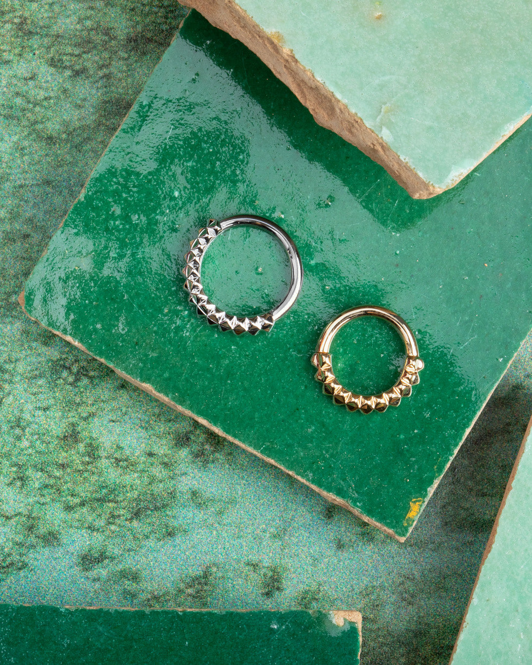 We design our threadless ends and piercing adornments in 100% Responsible Jewelry Council–certified, nickel-free 14K solid recycled gold. Each piece balances sustainability with enduring beauty, ensuring both environmental accountability and lasting quality.